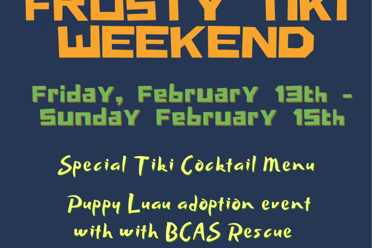 Frosty Tiki Weekend is taking over February 13–15 Escape the cold with a specialty tiki cocktail menu, tropical slushies, and the release of Bobby’s Tiki Idol Pineapple Wheat Ale With a selection of alcoholic and non alcoholic tropical inspired beverages!