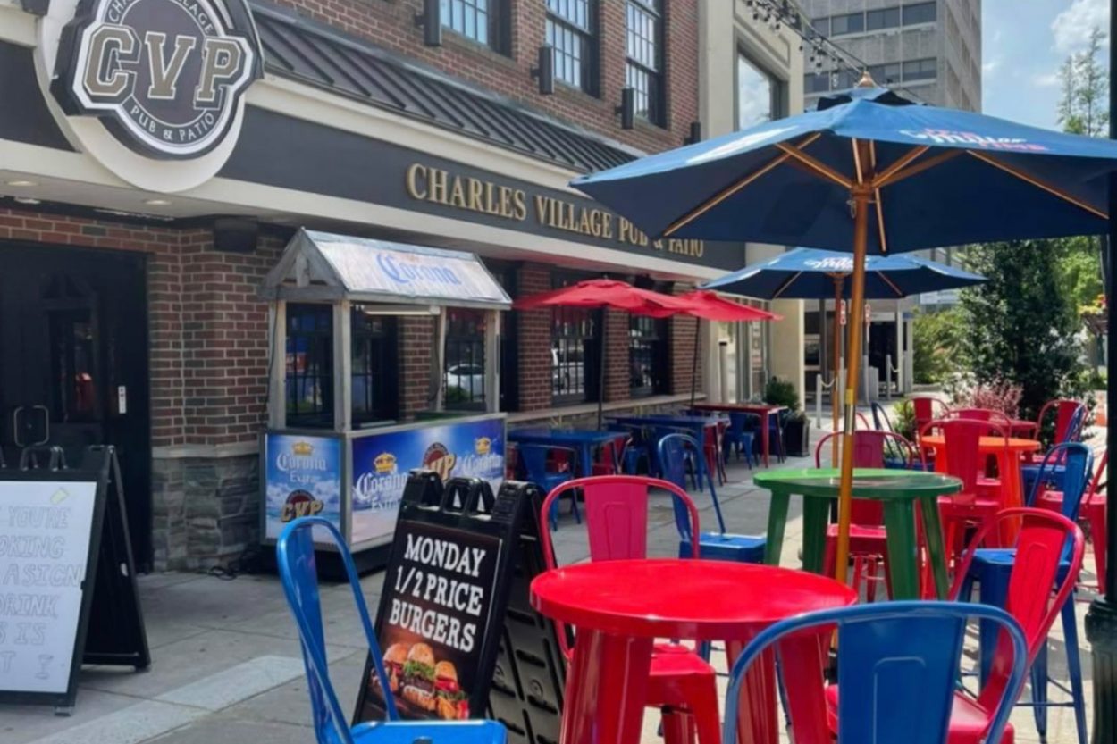 Charles Village Pub & Patio (CVP Towson) is a true Towson landmark and a signature neighborhood gathering place in historic Towson, Maryland. Steps from Towson University, our two-level venue features four full bars, a sun-soaked, dog-friendly patio, and a rooftop for open-air dining, perfect for catching the big game, live music, or a casual night out with friends and family. As Towson's favorite pub, bar, and American restaurant, CVP serves chef-driven bites and shareables alongside mouth-watering burgers, wings, savory sandwiches, fresh salads, and kid-friendly options. Behind the bar, enjoy a rotating selection of Maryland craft beers from beloved classics to exciting new releases, plus creative cocktails and crowd-pleasing pours. Looking for Towson nightlife and sports? Count on daily happy hour, trivia nights, live acoustic music on Fridays, and special tap takeovers spotlighting local Maryland breweries, with the biggest college and pro games always on throughout our sports bar. Planning an event? CVP Towson is a flexible event space, wedding venue, and full-service caterer in Baltimore County. Host birthdays, graduation parties, alumni gatherings, corporate events, fundraisers, showers, rehearsal dinners, and wedding receptions. Our in-house party services, customizable menus, and bar packages make planning seamless, on-site or off-site catering available for groups large and small. Reserve online, order ahead, book a party or wedding tour, or simply walk in and enjoy the atmosphere. CVP Towson is a local trademark and landmark you won't want to miss!