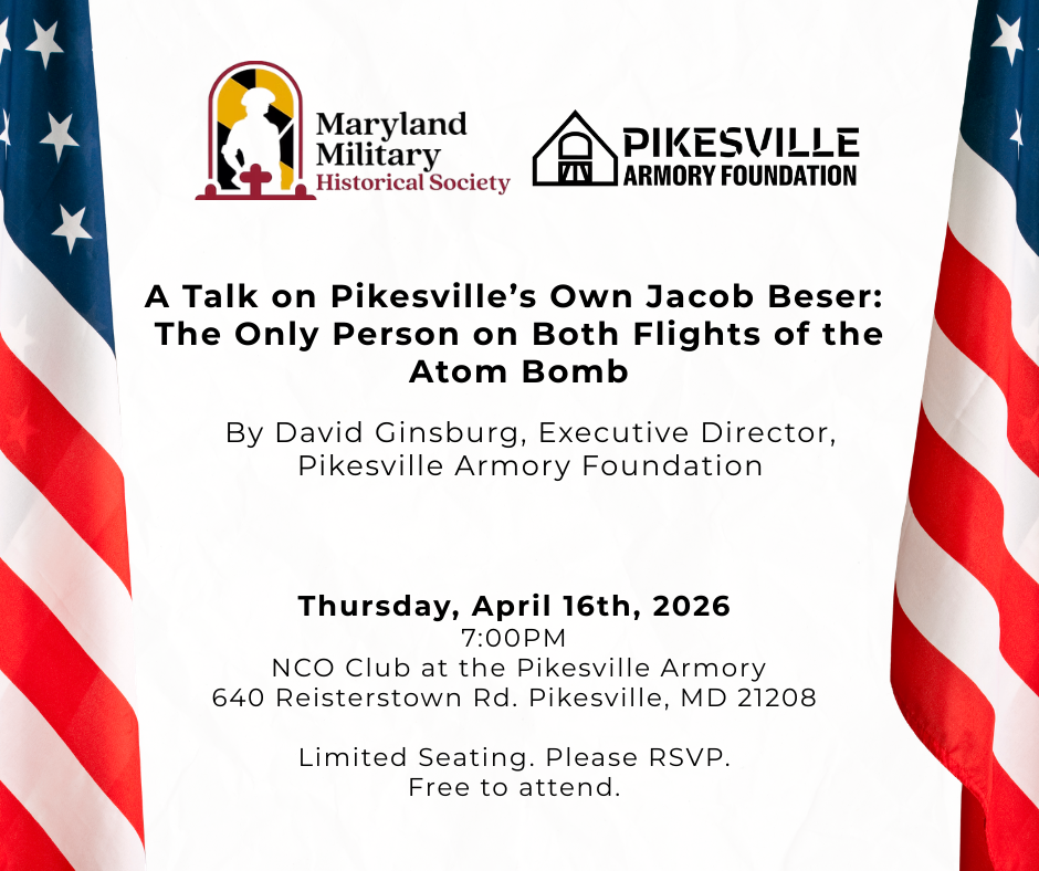 The Pikesville Armory Foundation and Maryland Military Historical Society present: “A Talk on Pikesville’s Own Jacob Beser: The Only Person on Both Flights of the Atom Bomb”, by David Ginsburg, Executive Director of the Pikesville Armory Foundation…