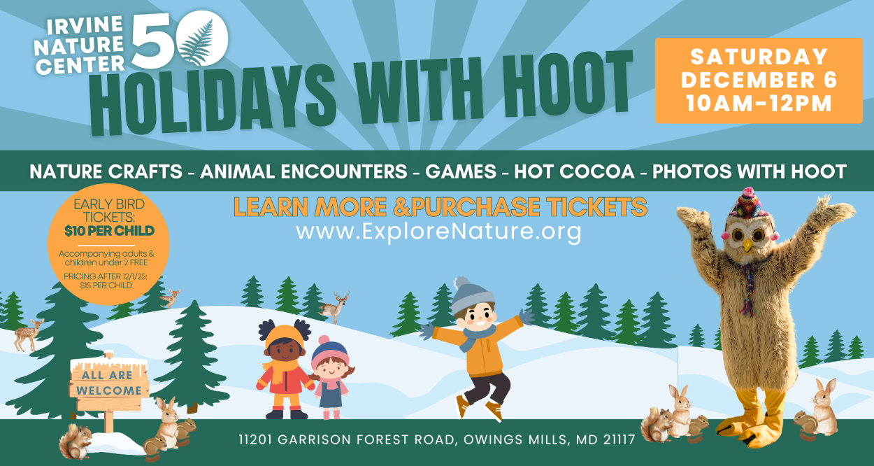 Celebrate the season with Irvine’s premier family event Meet our animal ambassador owls to learn more about these amazing birds up close Enjoy games and crafts, from making holiday gifts to creating a beautiful evergreen swag Hunt for animals on a scavenger hunt Enjoy hot chocolate with a game of winter bingo and get photos with Irvine’s mascot, HOOT! Great fun for the whole…