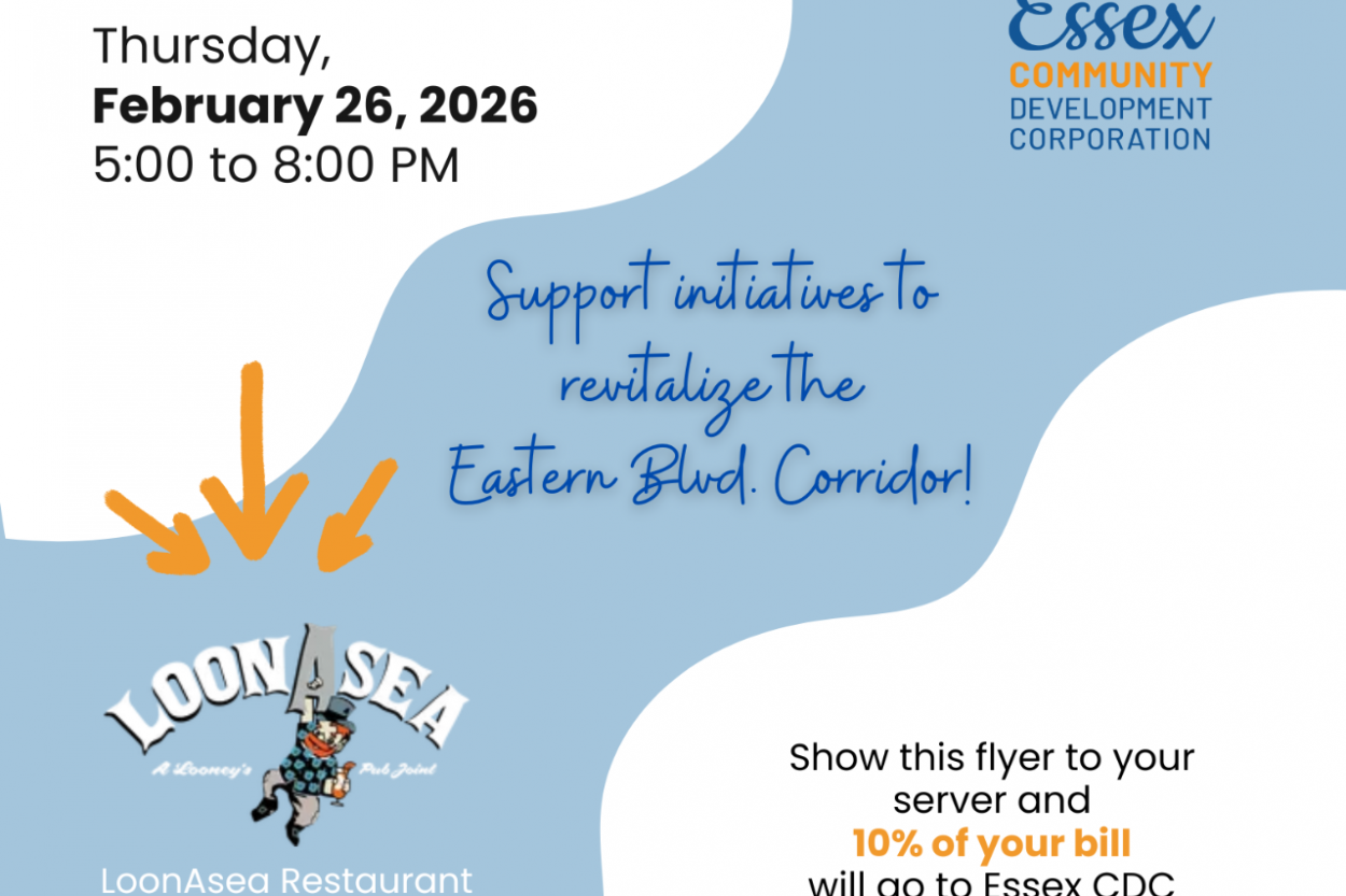 We’re thrilled to share that LoonAsea Restaurant is supporting Essex Community Development Corporation once again for our Essex Eats for Good event! 10% of your bill during the event will support Essex CDC and our efforts to revitalize the Eastern Blvd corridor…