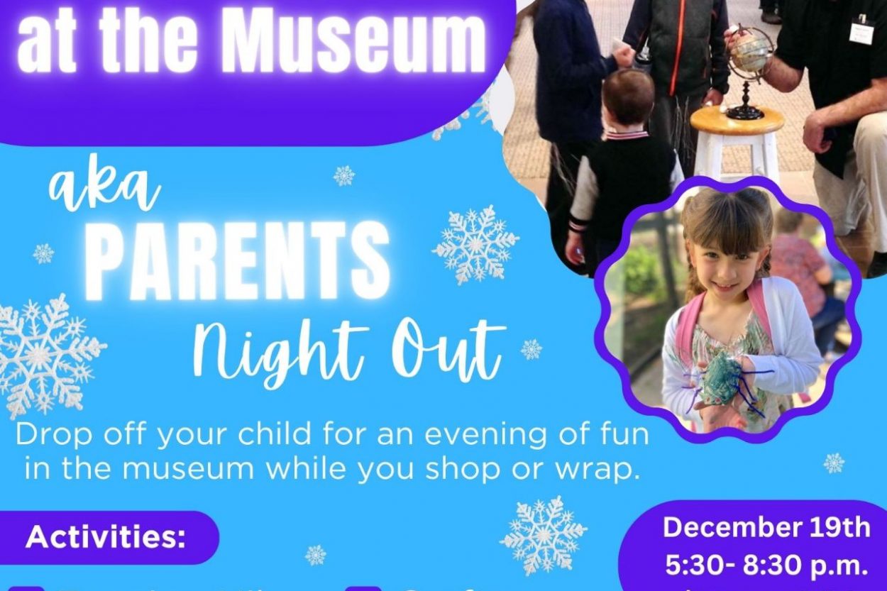 Drop your kids off for an evening of fun in the museum, while you wrap or shop! $12 per child…