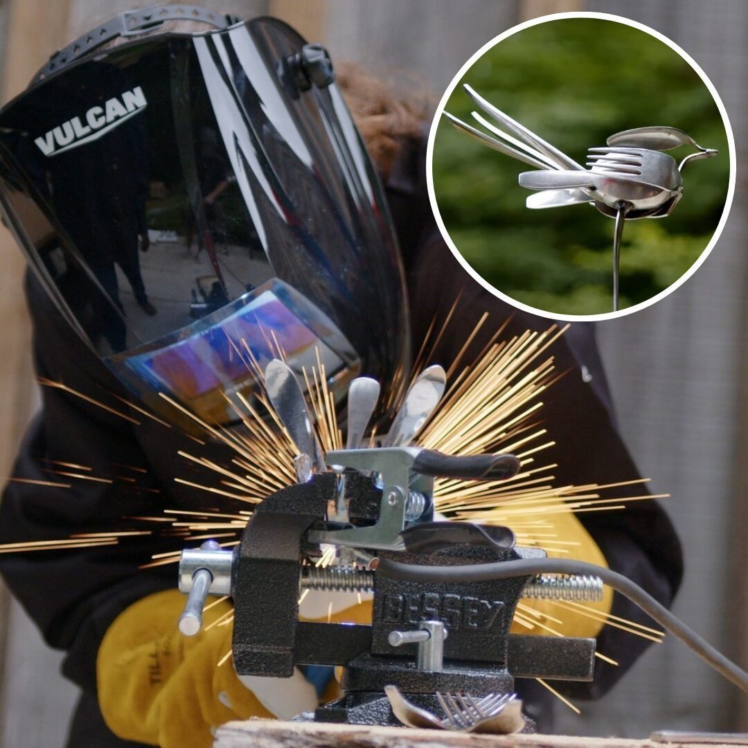 Learn the basics of Metal Inert Gas (MIG) welding in this make-and-take class where you’ll make a bird out of common kitchen utensils. Topics include welding safety, equipment, processes, technique, and basic metallurgical properties. No experience necessary, and suitable for anyone age 12 and older. Natural fiber clothing (cotton, etc.) and close toed shoes (preferably leather) required. Course is held outdoors and all equipment and materials are provided.