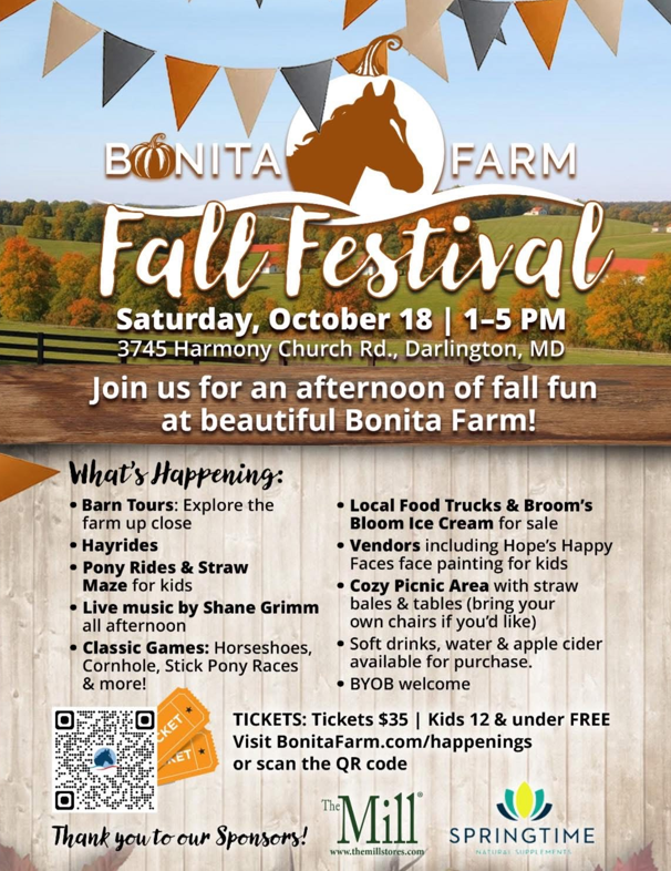 Hay rides, pony rides, a straw maze, barn tours, a picnic area, local vendors, food trucks, games and more family fun!