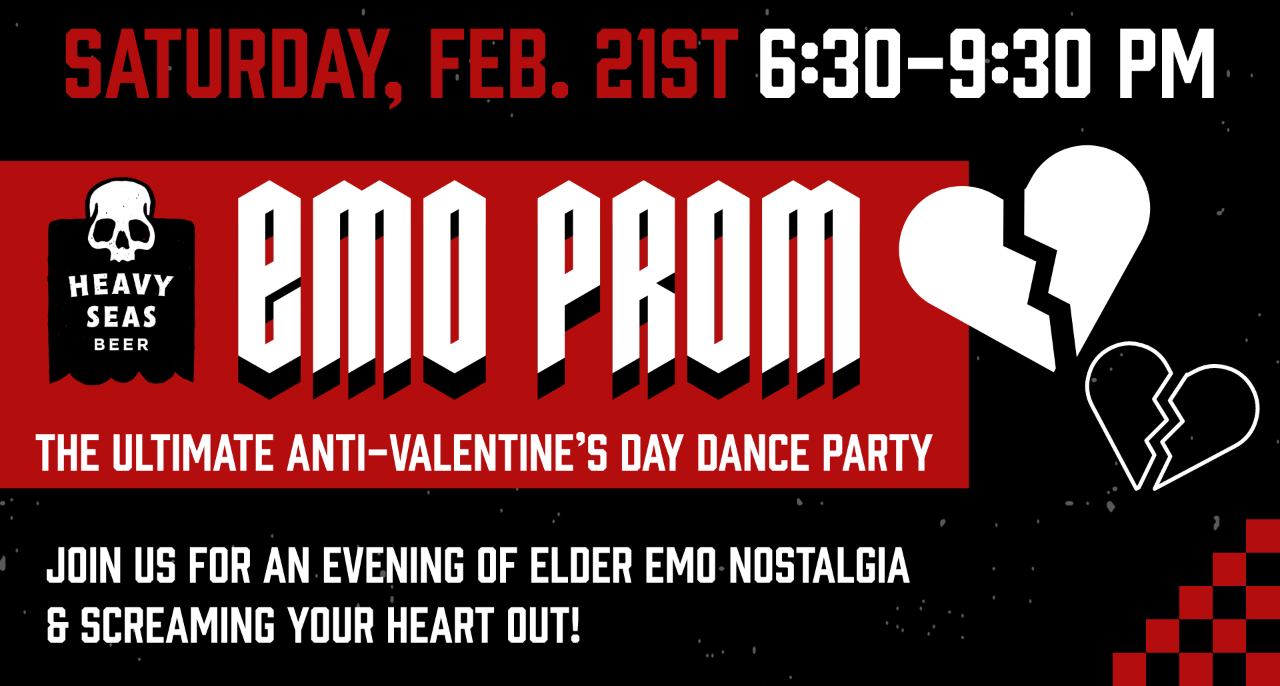Join us for the ultimate anti-Valentine’s Day dance party—Emo Prom—where DJ Kyle Herman will be spinning all the emo and pop-punk anthems that shaped us. Expect nonstop sing-alongs from My Chemical Romance, Fall Out Boy, Paramore, Taking Back Sunday, and Dashboard Confessional and more — the songs that taught us how to feel everything.