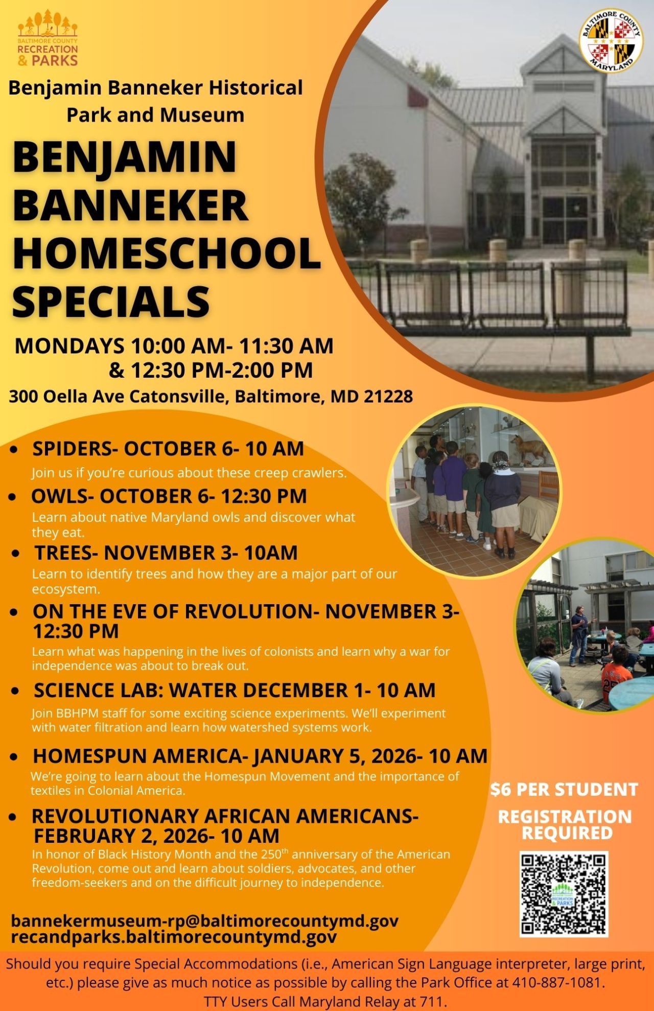 Homeschool Special: On the Eve of Revolution…- 11/3 at 12:30 p.m. Travel back in time 250 years to November 1775 and learn what was going on in the lives of colonists like Banneker. Explore what everyday life was like and learn about why a war for independence was about to break out!
