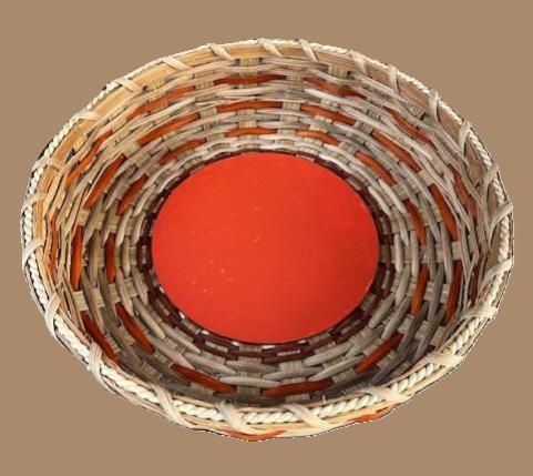 Students will weave a round platter style basket with a 6” wooden, painted slotted base. The base stakes will be inserted prior to the class in the interest of time.