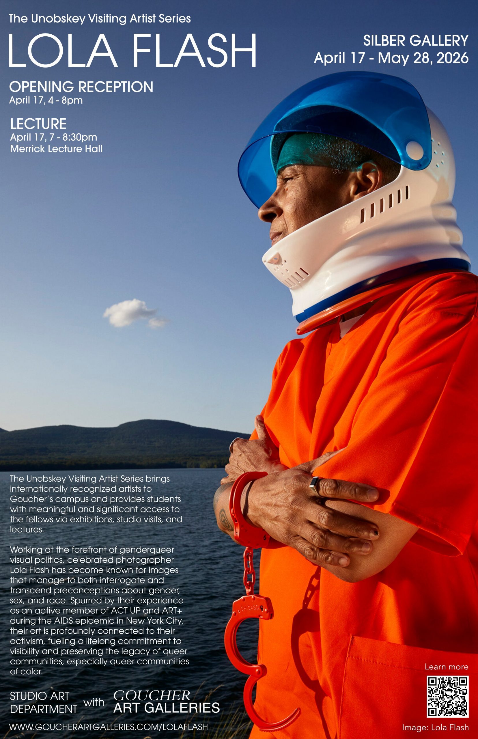 Goucher Art Galleries presents The Challenge: Survival & Visibility, a retrospective exhibition of work by acclaimed photographer Lola Flash, whose portrait practice has, for more than four decades, centered visibility, dignity, and care for communities historically marginalized in mainstream culture. Working across analog and digital processes, Flash creates richly saturated portraits that refuse neutrality. Her images are not simple documentation but acts of affirmation. Through bold color, direct gaze, and collaborative engagement with her subjects, Flash constructs portraits that insist on presence: images that declare, unequivocally, “We are here.”