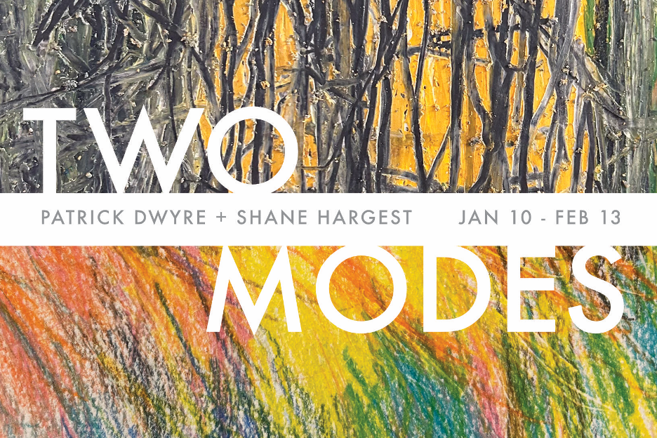 On view from January 10 – February 13, Two Modes is a two-man exhibition in our showroom gallery that pairs the energetic, multimedia creations of member artists, and emerging collector favorites, Patrick Dwyre and Shane Hargest. As summarized by Make Studio’s Studio Manager, “Shane conquers his work from all four sides with brush, pencil, or pen. . . Patrick often begins with a dense multicolor layer of oil pastels, subsequently embossing it with graphite pencil. . . common denominators in their distinctive modes are layered density and fearless abstraction.”
