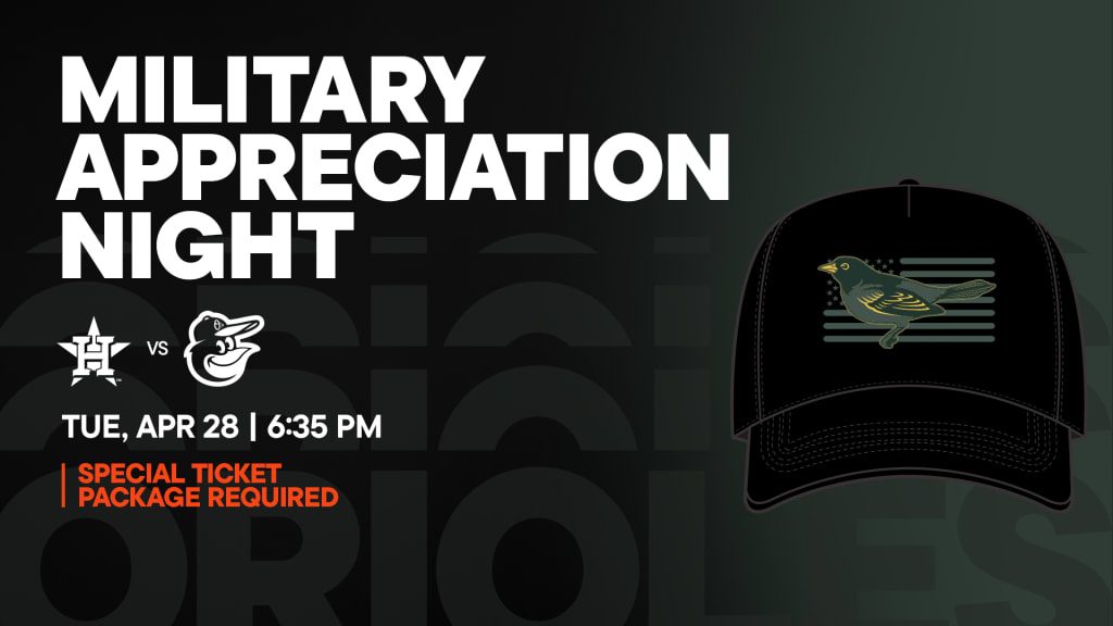 On Tuesday, April 28, the Orioles are proud to honor the service and sacrifices of all who have worn the uniform at Military Appreciation Night when the Orioles take on the Astros at 6:35PM Fans who purchase this special package will receive an exclusive Military Appreciation Cap and a ticket to the game More information and tickets can be found at Oriolescom/TicketPackages…