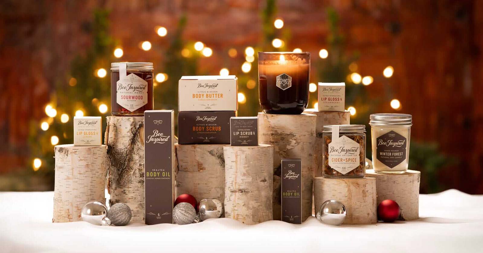 Raw honey and bee-related personal care items, artisanal beauty products, and sweet treats